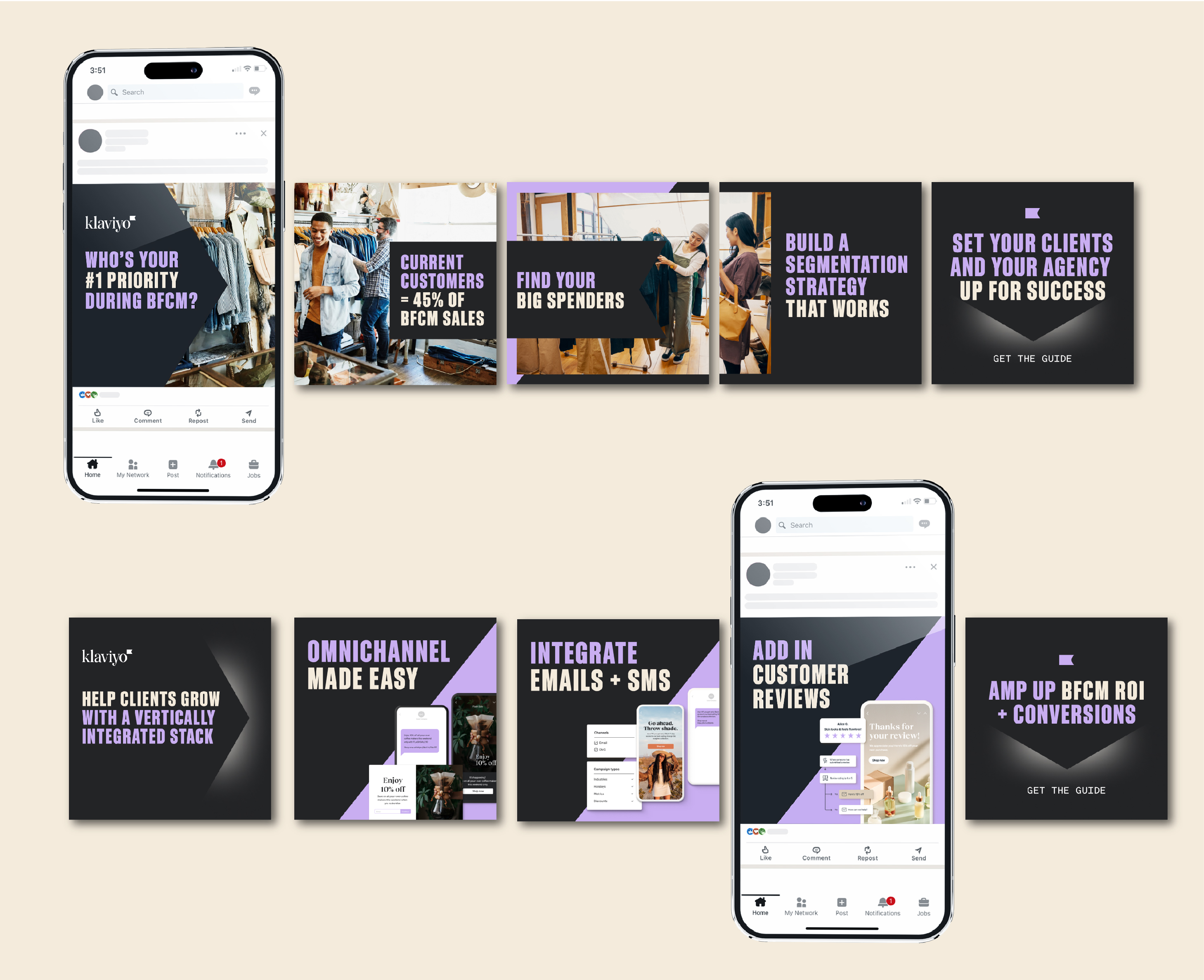 Once campaign visuals were established, I created and directed my team members on executing multiple deliverables for both partner and customer-facing campaigns.